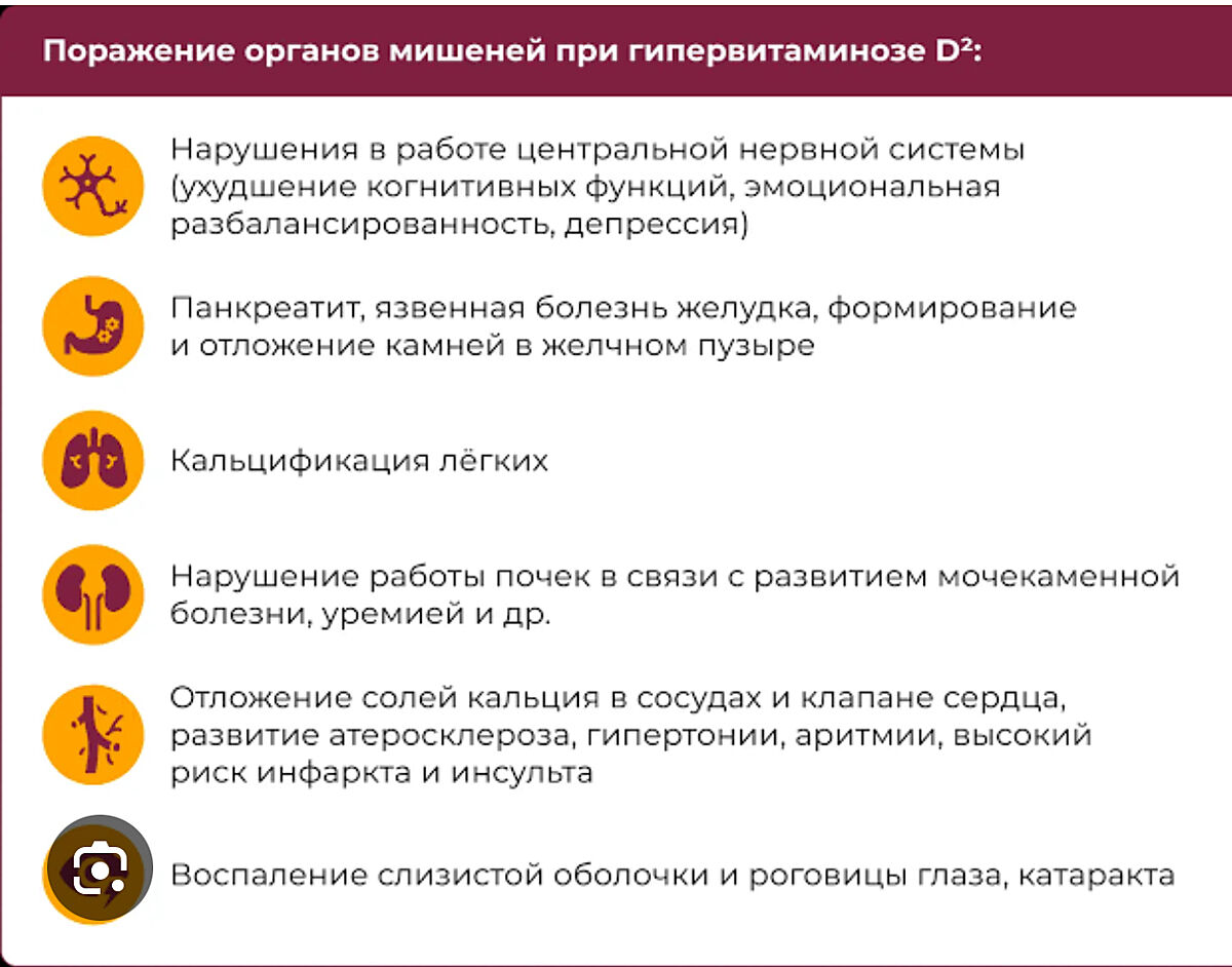 Я кое-что из этого пережила в результате приема витаминов д в небольших дозах. Гипервитаминоз он не только в росте уровня витамина Д в организме, но и как он усваивается, оказалось, что у меня всё в кальций идет и откладывается везде.