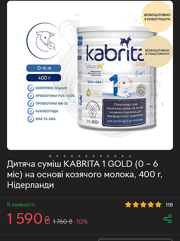 Ми таку купуємо. Не звертала уваги на те, що вона дорожче. Непогана суміш. Підійшла нам краще за кендаміл розхвалений. Ще пробувала хіп на козиному. Теж непоганий, наче.