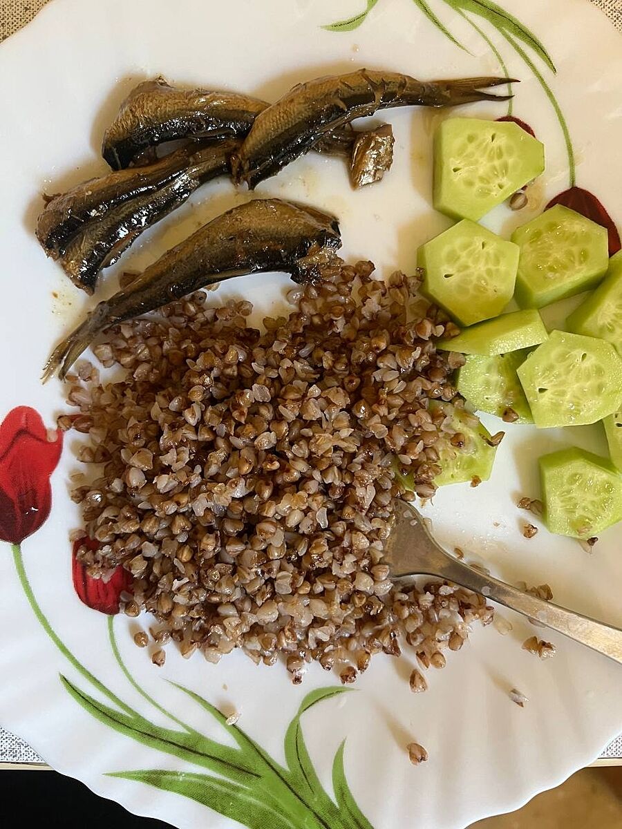 Шпроти були по акції) давно не їла, згадала що вдома гречка, огірки ммм