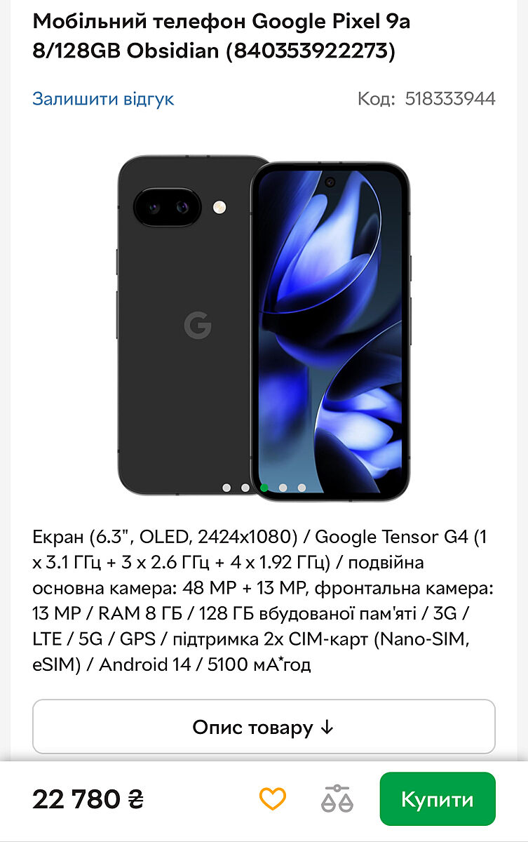 я там выше дописала) но меня это не остановило и я тоже гугл пиксель купила,вот такие мы странные))) Покупали в одном и том же месте, МТА