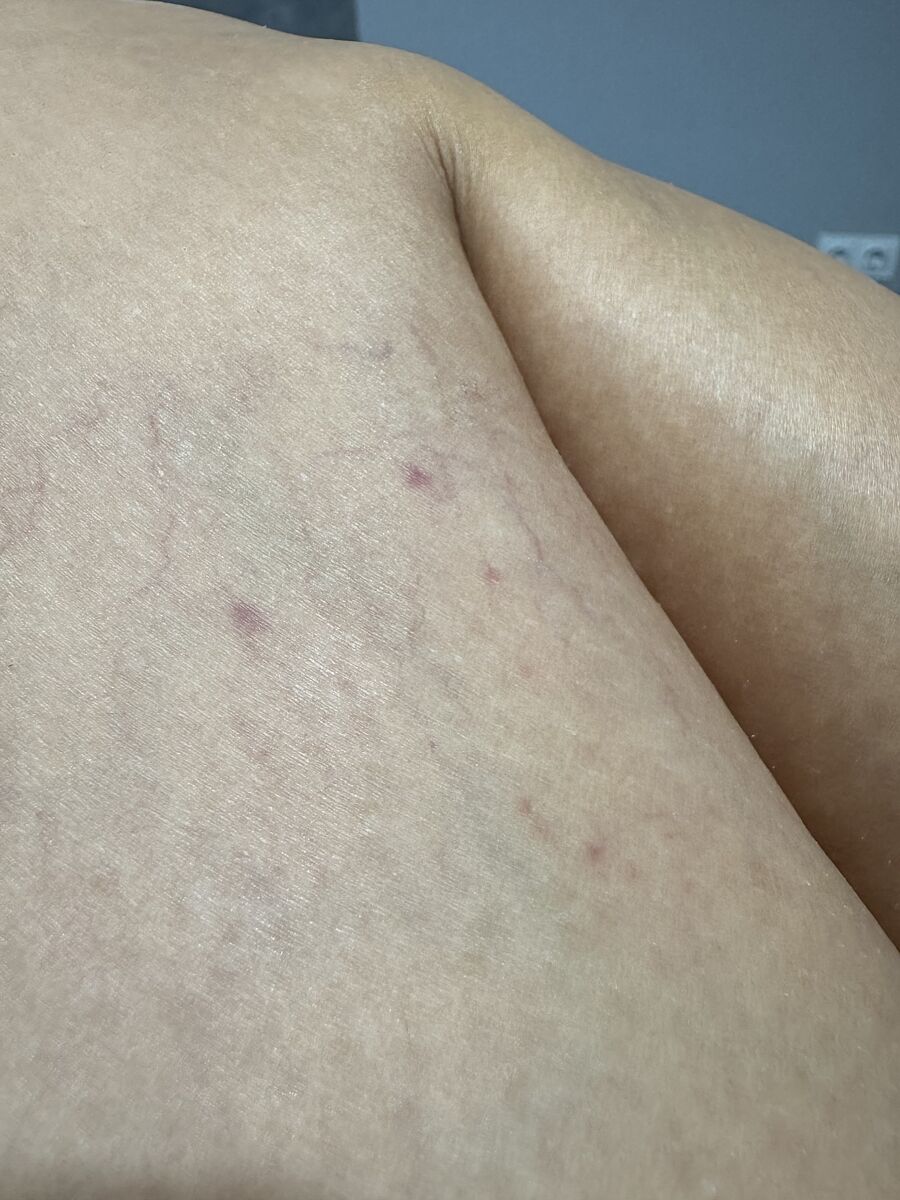 На що схожі ці крапки фіолетово-червоні на капілярній сітці? Що це може бути? Зʼявилися вчора, не турбують. Може хтось з таким стикався?