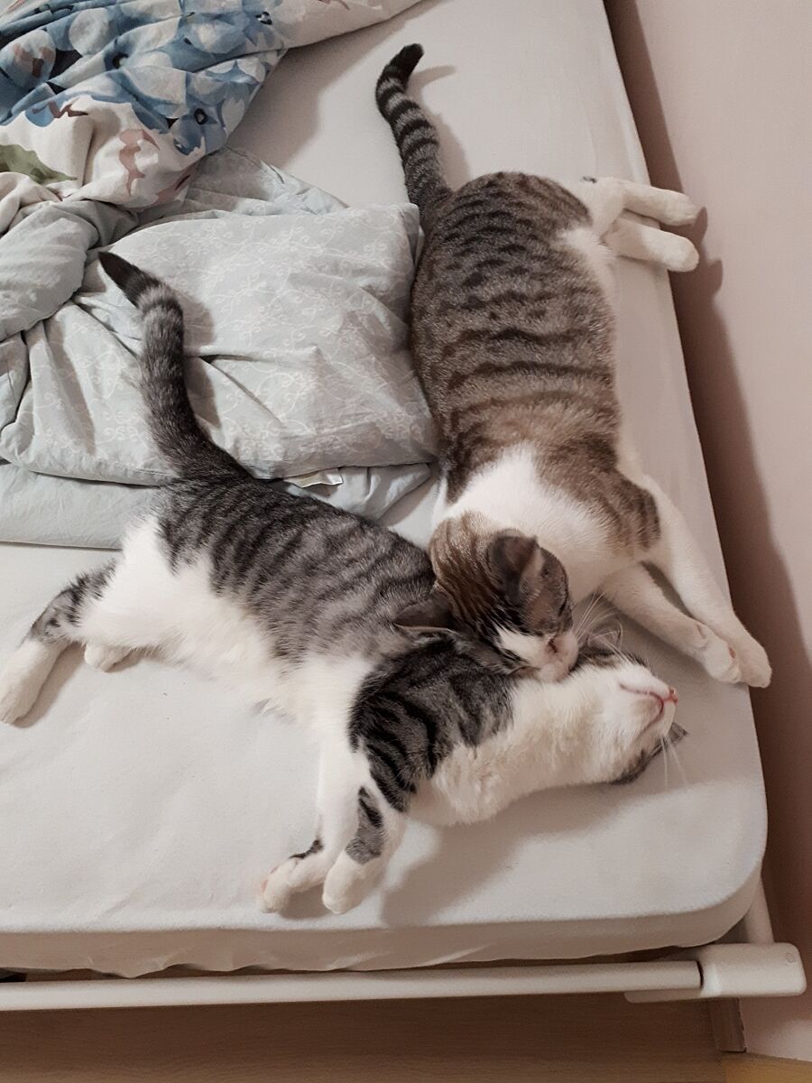 Взяла з вулиці хворого, на ізоляції тримала 10 днів, поки лікувала. Обробила від блох/глистів. На лоток ходити привчала з допомогою спеціального спрею . Старший кіт шотландець, малого не прийняв. Постійно на нього шипів і бив. Малого я обстежувала, здавали аналізи, але УЗД не робили. Прожив в нас 3 роки, потім раптово надувся живіт, перестав їсти, я бігом з ним в ветклініку, виявилося вроджена вада серця, через тиждень помер, не зважаючи на всі мої зусилля його вилікувати. Для мене це трагедія, котик був дуже хороший, ласкавий, муркотливий, розумний.