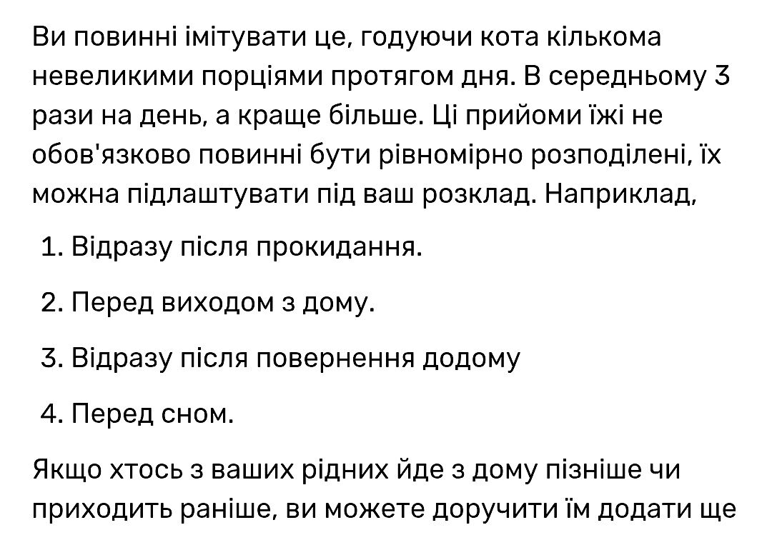 дорослі коти на натуралці їдять двічі на день , поки малі звісно частіше