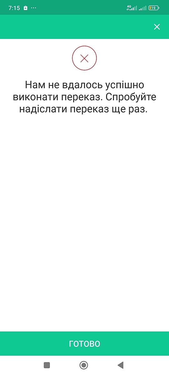 Ні, родичу хотіла перевести, на збережену картку. Невелику суму. Але як таке вискочило, я спробувала й на інші картки, в мене є збережені картки подруг і рідних, то скрізь вискакувало те ж саме.