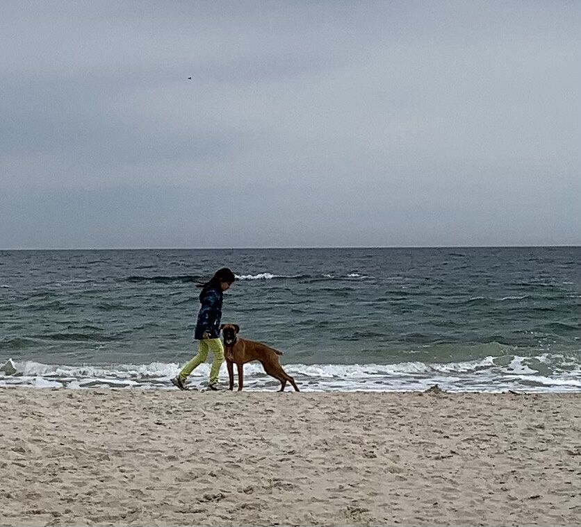 15 минут до моря, не хожу с начала войны. Вот последний раз на море, собака была щенком. И сейчас ей 5 лет.