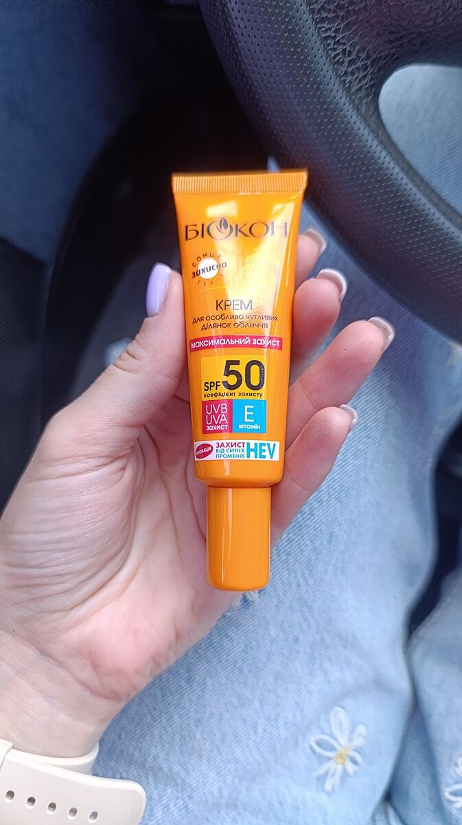 Такий Біокон на 50 використовувала в тропічному кліматі на обличчі - не обгоріло і пори не забились (змішана шкіра, зранку і ввечері вмивалась очищуючим гелем). Для тіла теж був Біокон - все ок.