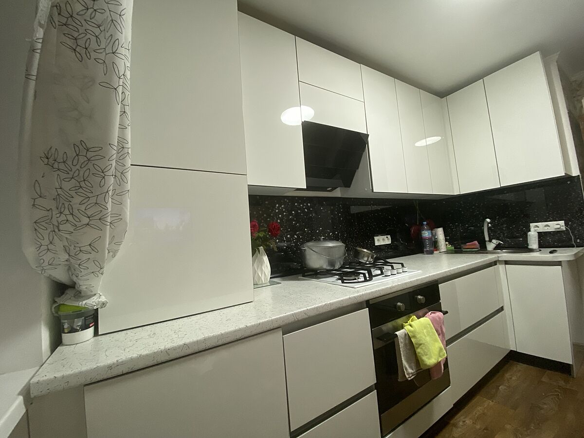 Я б посунула мийку. І зробила б всі верхні тумбочки однакової ширини. Не треба підлаштовуватись під ширину нижніх