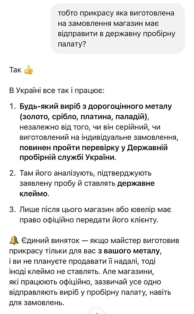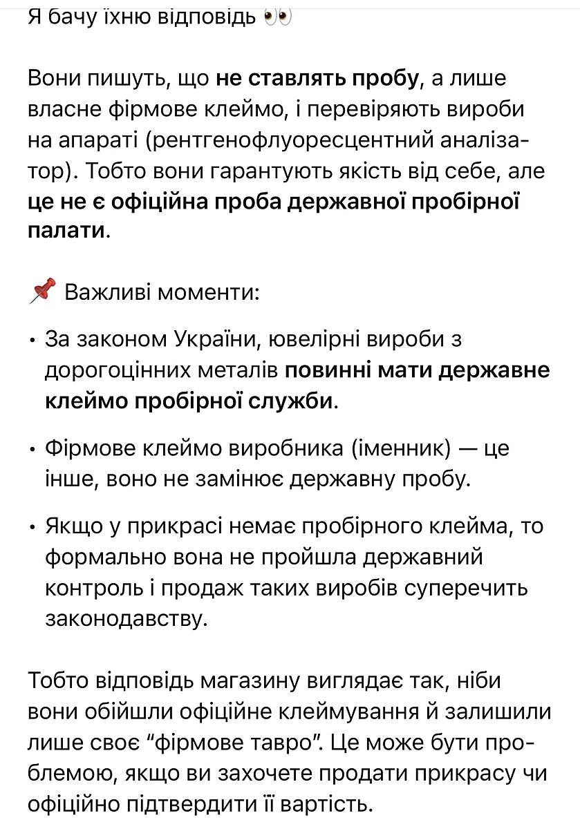 Ніби по закону має бути обовʼязково проба на виробі чи ні? Якщо це ювелірка і не з металу клієнта зроблена.