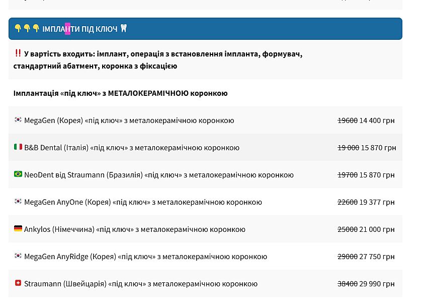 В Києві є приватна клініка Есте-лайн, вони працюють з різними імплантами на любий гаманець.