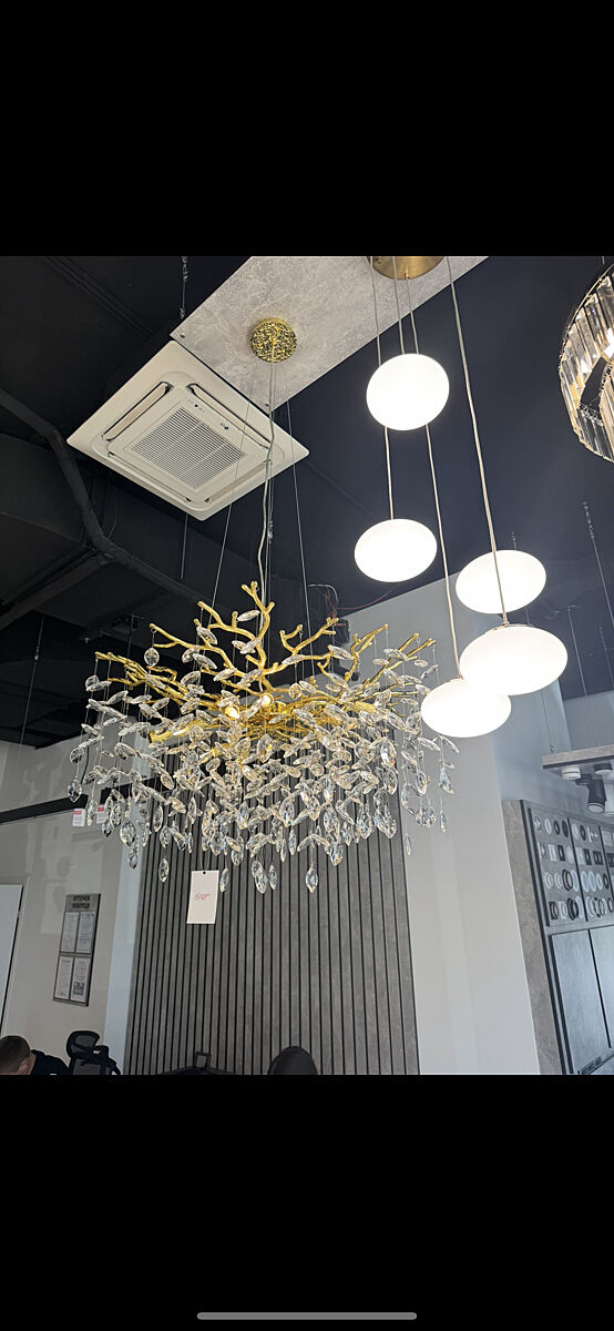 Эти люстры света особо не дадут, будут отражаться во всех поверхностях, замена ламп- стремянка постоянно. Я бы что- нибудь диодное сплошное ставила.