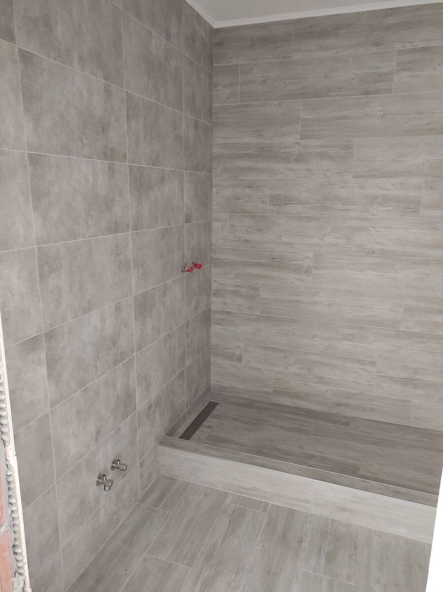 Можливо, в нас був роздільний санвузол, туалет настільки малий, що чоловік не міг закрити двері, коліна впирались, ванна була мала, сидяча та ще й з виходом на кухню. Обʼєднали, замурували входи і зробили в коридорному проході посередині. Заходиш, зліва туалет, справа душ підлога з наклоном. Єдине, в душі шторка і двері в санвузул зробили пластикові.