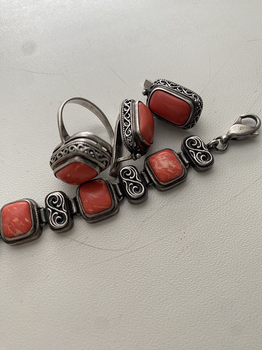 Это очень популярная вставка сейчас, натурального коралла в наших современных заводских изделиях сейчас нет, увы. Но сам комплект хороший, брендовый, классика. Была бы вставка какая-то натуральная - было бы вообще сокровище