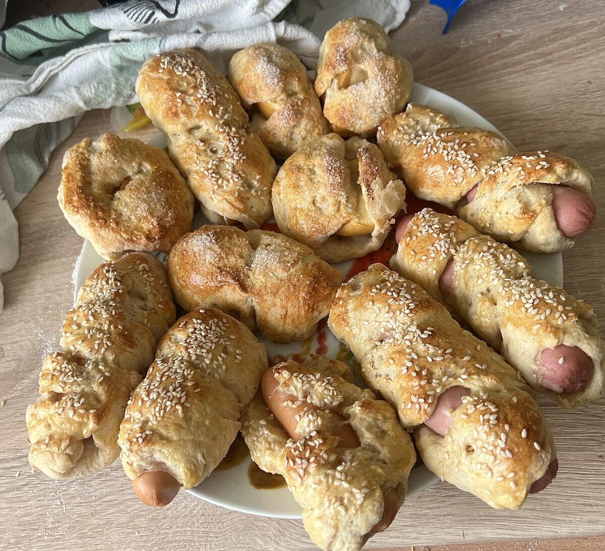 Если вы печете, как я сегодня попробовала сделать сосиски и яблоки в тесте и получаются такие же уродцы, то не беритесь.!