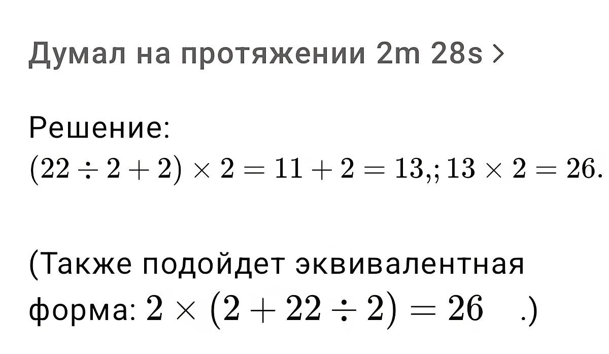 У записі 2 2 2 2 2 між деякими двійками постав знаки математичних дій та дужки так, щоб значенням отриманого виразу було число 26. ( Це 5 клас)