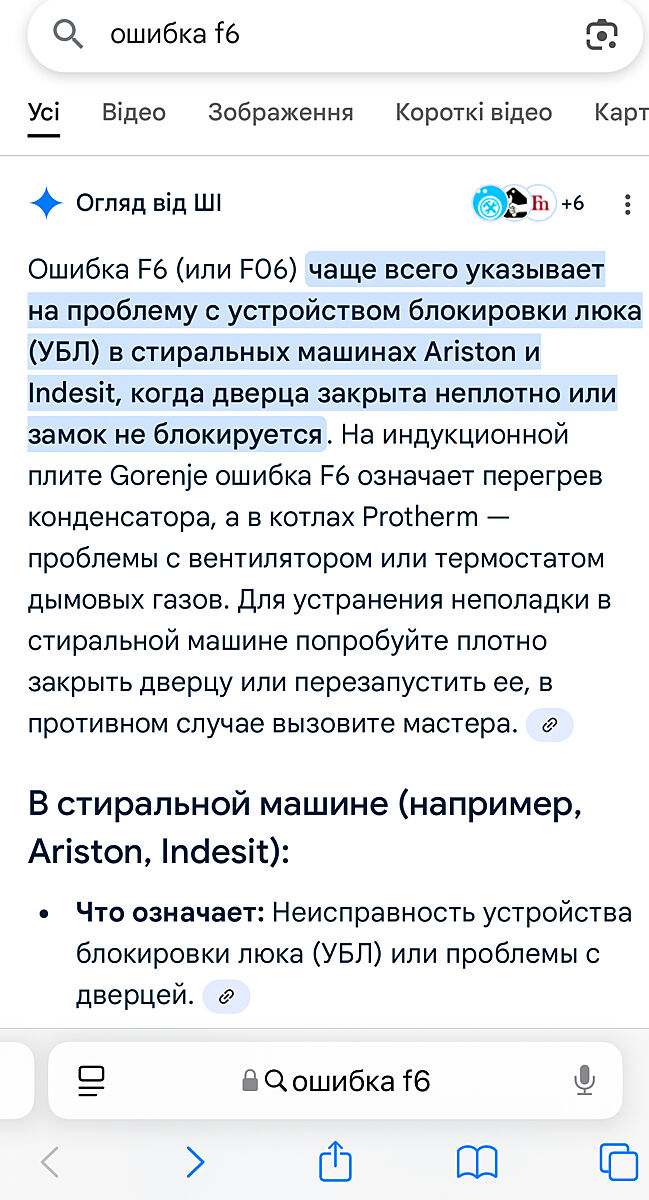 Стирка начинается и через две минуты мигает красным и на табло ошибка F6