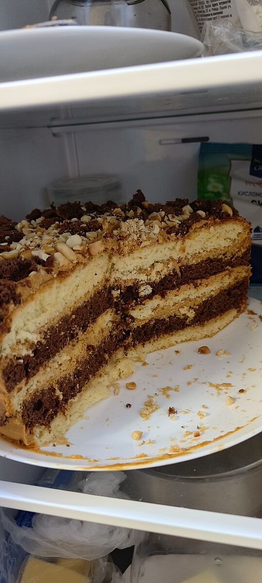 Захотелось сладкого, спекла 2 бисквита обычный и шоколадный. Взяла сгущенку в атб и пачку масла, взбила и намазала коржи, вкуснота, быстро и вкусно.
