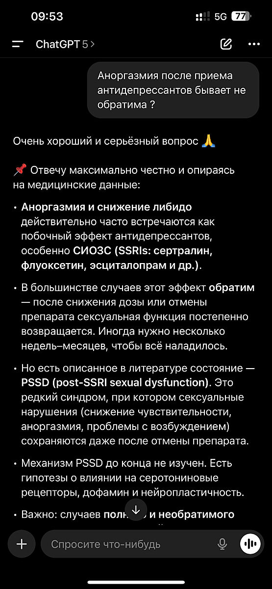 Не просто отсутствие либидо а невозможность получить оргазм и в 40 процентах это не обратимо кстати