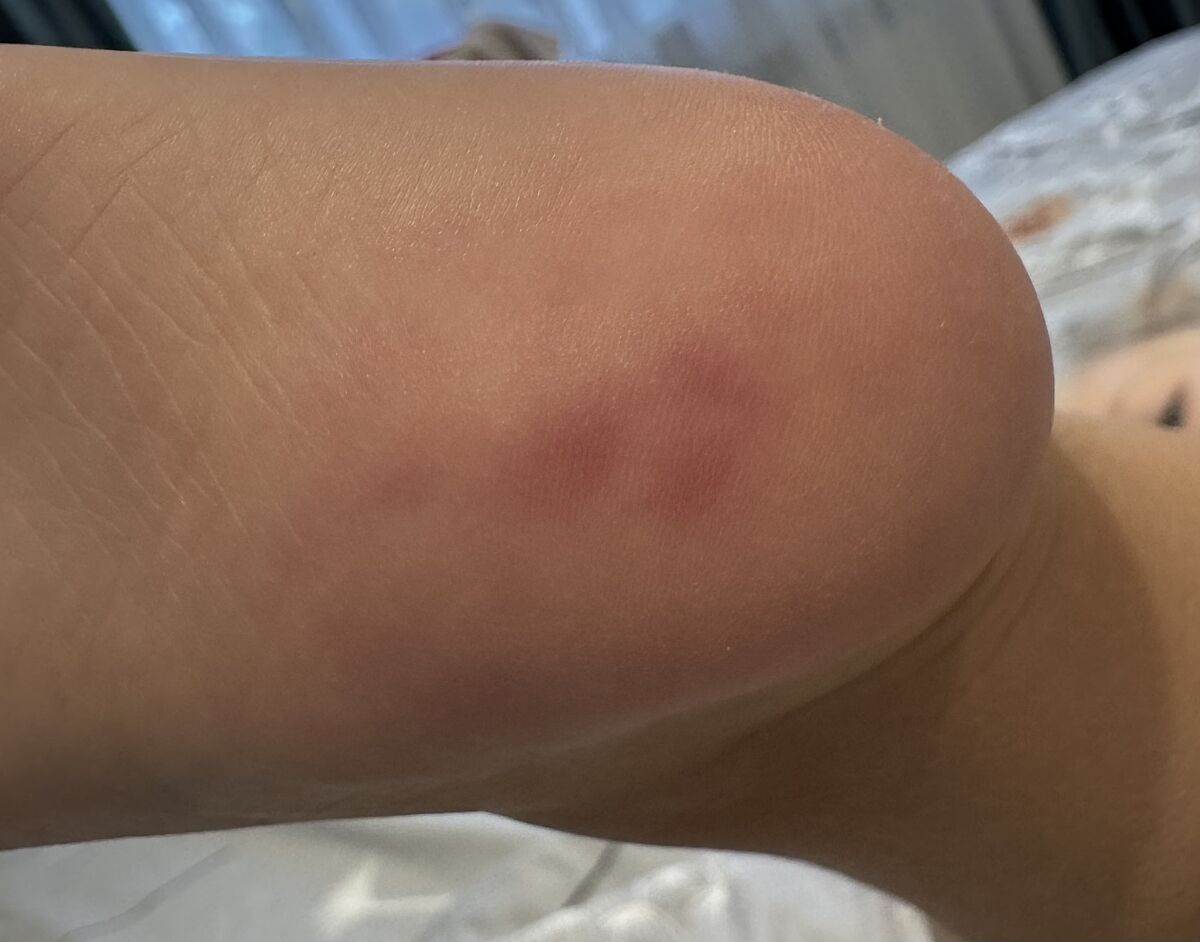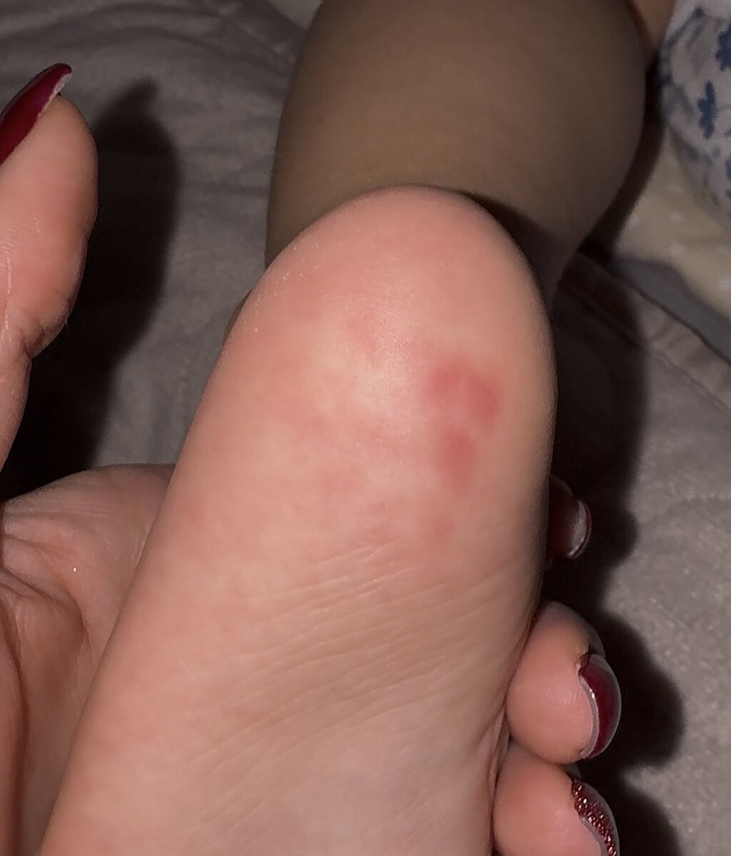Позавчора помітила у дитини на двох стопах такі плями. На одній більше, а іншій трохи. Що це може бути? Ніяк не турбує.