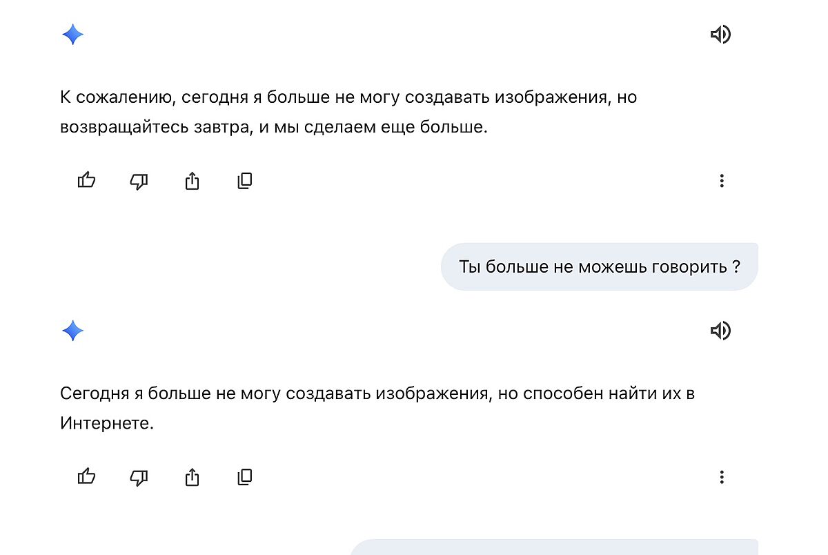 Сегодня юзала его как могла . Рассказывала пересказывала историю со знакомой - а что она сказала , а как я ей ответила и по многу раз и так втянулось в это отсасывания что ИИ сказал что сегодня больше не может общаться со мной 🤦♀️🤦♀️Мне кажется я поставила рекорд . У кого то ещё так было ?