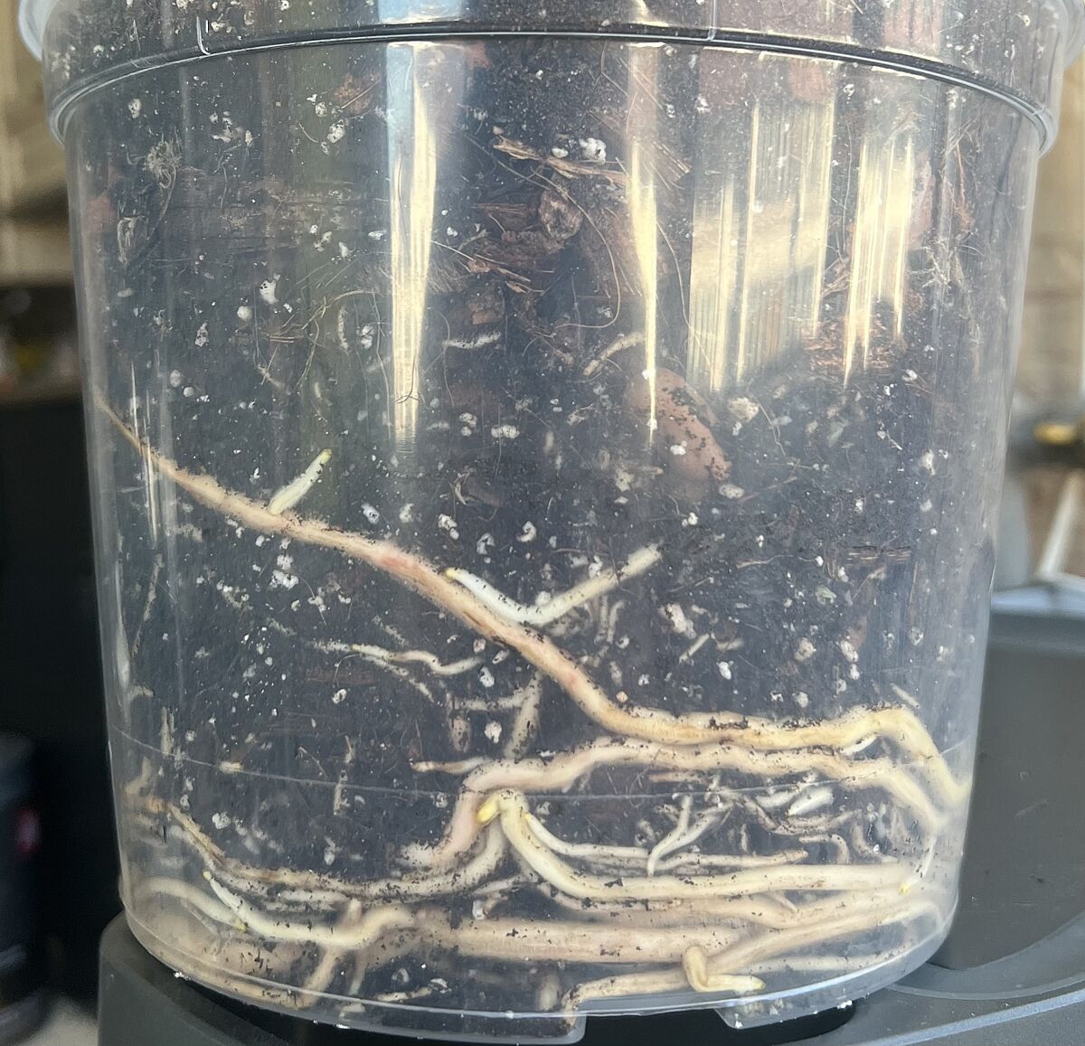 Подивилась ввечері в горщик. Не розумію як так швидко наросло коріння. Заглядала до нього буквально тиждень тому, ще так не обвито було. І це 19 діаметр горщика 🤔