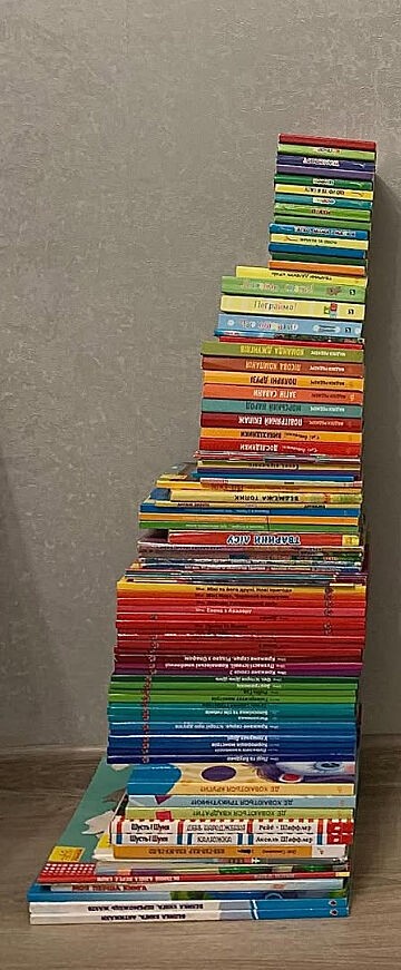 Вот увидела в тредсе фоткают детей со стопкой книг, у некоторых стопки эти выше детей. Вот и мне интересно стало сколько ж у нас книг, ребенку 2,5. Книг насчитала где-то 65-70 , не помню уже, но конечно стопка вышла скромная.