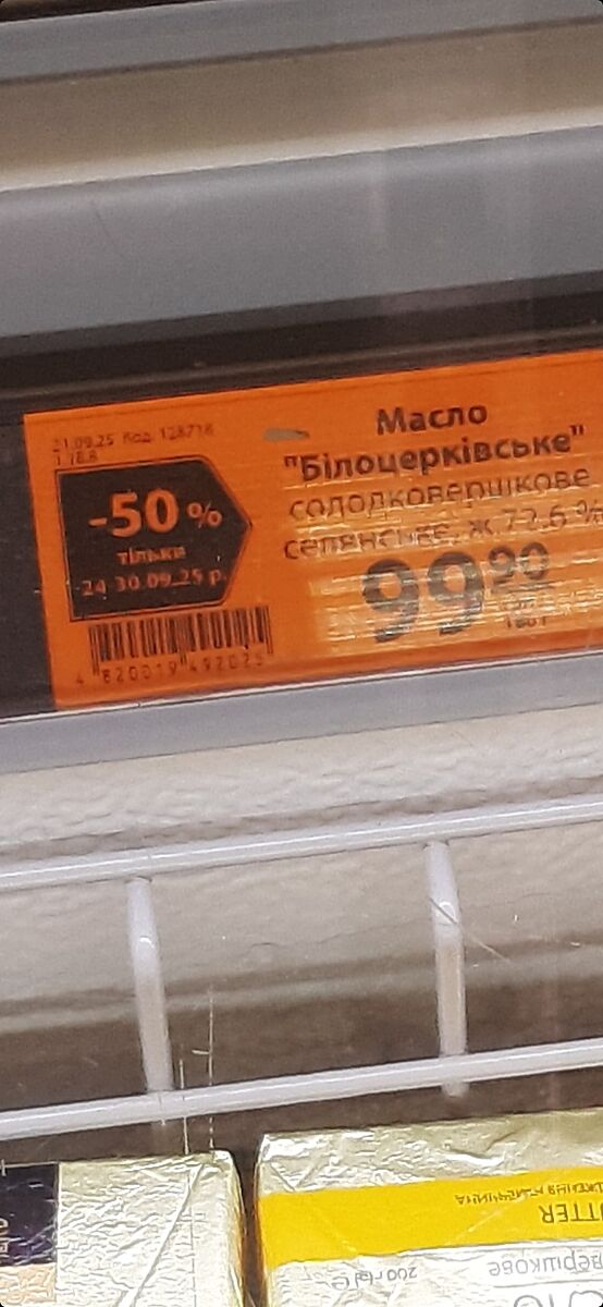 І так, масло ваше зараз зі знижкою було 118, перекреслено, стоїть ціна 90 і знижка -50% саме 24.09.