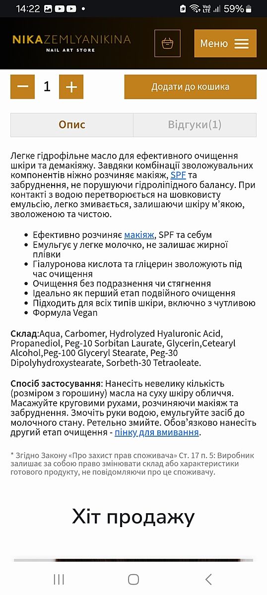 Точно, це засіб для очищення, по якості - не в курсі, колись брала шампунь НЗ на пробу, ну так собі, мені не підійшла, а от сироватка двофазна для рук, кутикули була суперова.