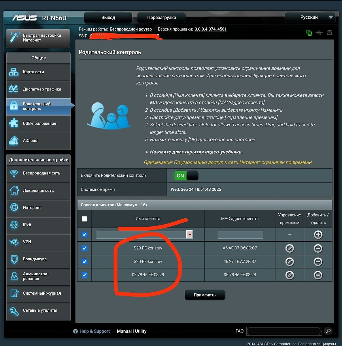 Вот пример,как у нас было.Роутер АСУС,к родительскому контролю подключены два телефона и планшет(на 1 скрине).И график работы для одного из телефонов