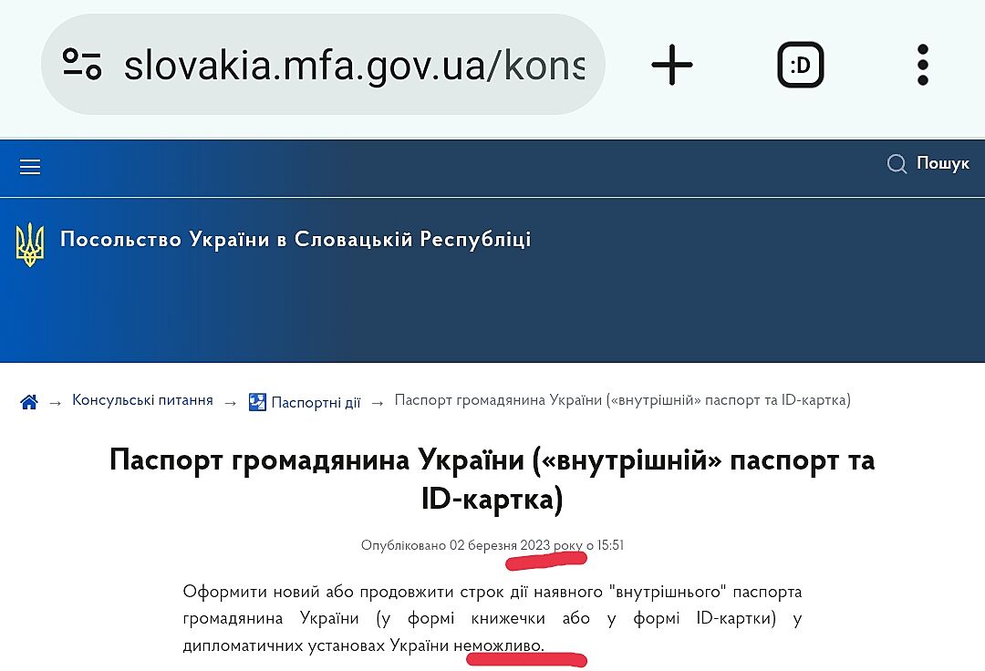Ще раз-актуальна (не до війни) інформація з сайта консульства в Словаччині така ж сама -консульства не оформлюють внутрішні паспорти, тільки закордонні.