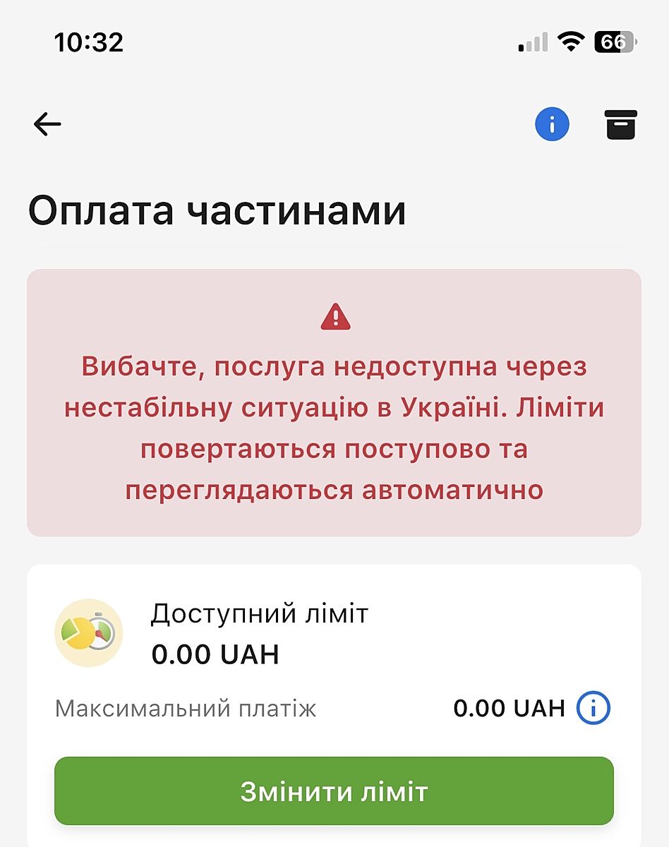 Я Впо з Луганської області і ця послуга для мене не доступна, хоча ще в січні я купувала з оплатою частинами((( курви...