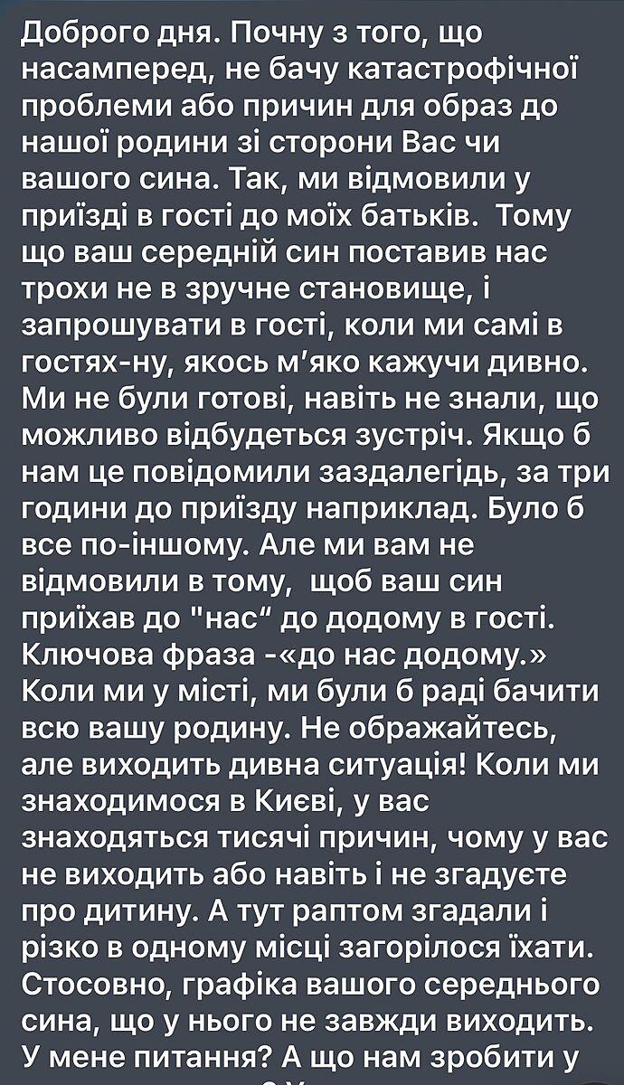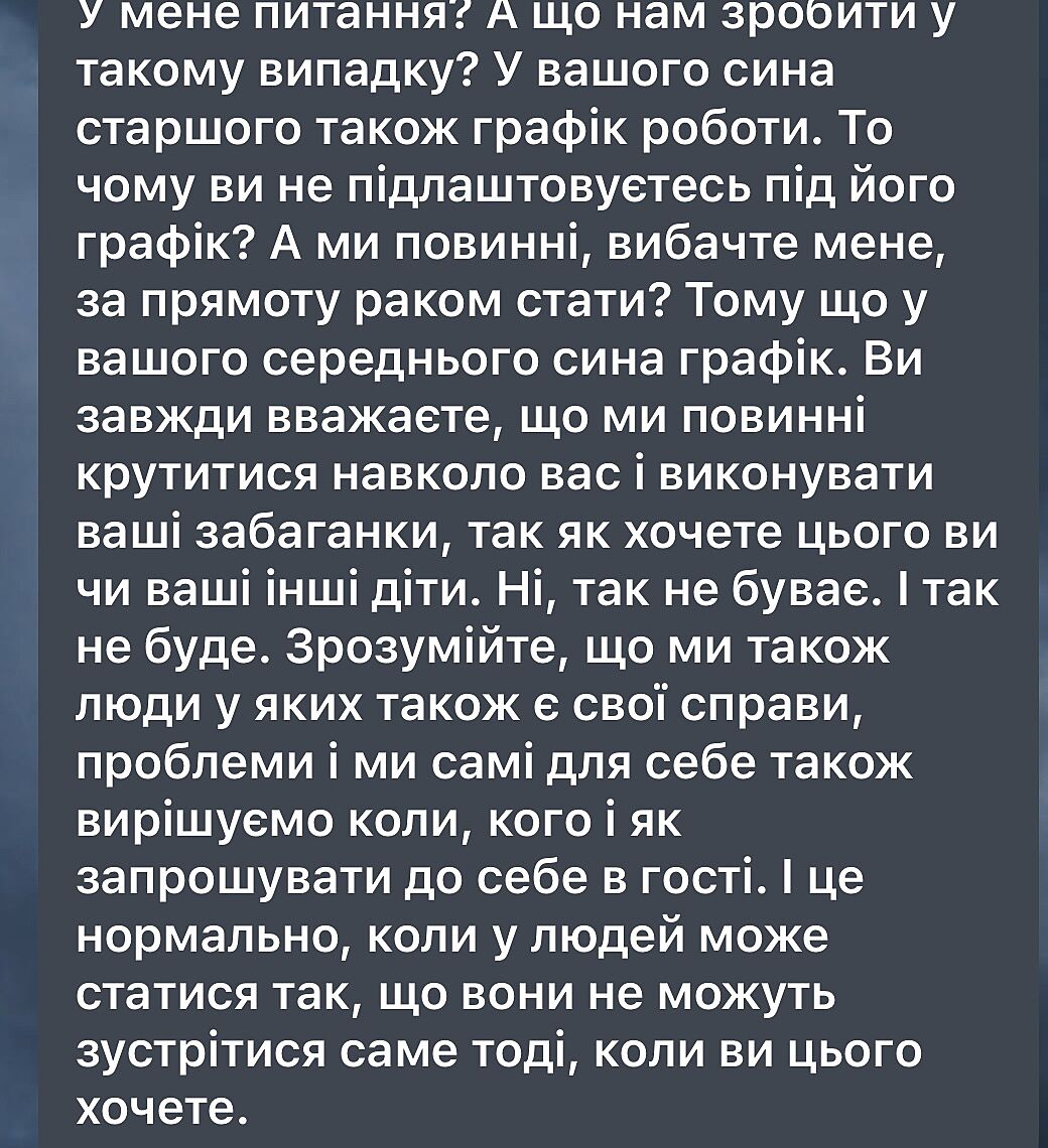 Дякую за текст, уже заскрінила. В мене теж така намахана свекруха, яка ставить перед фактом коли пані їдуть і тре зустріти