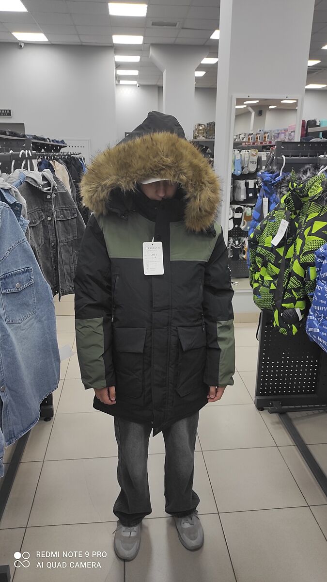 Какая-то чуть военная из-за зелёных вставок, но лишь бы цена была норм и выполняла свои функции: грела, защищала от снега, дождя, прикрывала жопу, замок не ломался.