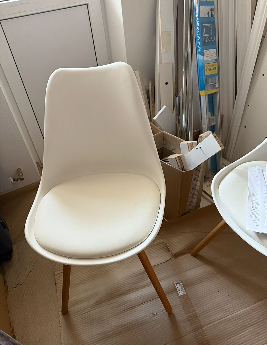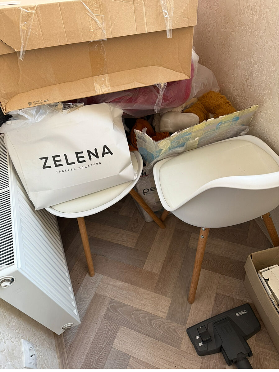 Хорошие стулья , удобные , мы купили потому что сидеть нужно было на чем то уже вечером , а потом купили те , которые по дизайну подходили . Кстати , классические стулья , которые мы купили к дизайну , менее удобные , муж долго не понимал моего прикола 😂. Вот они стоят - мешают , покрытые пылью ( я ее чуть рукой смахнула , но с боку осталась ). Никак не дойдут руки на олх их выставить. Но когда захочу обустраивать и эту комнату ( она пока не нужна ) , они будут конкретно мешать.