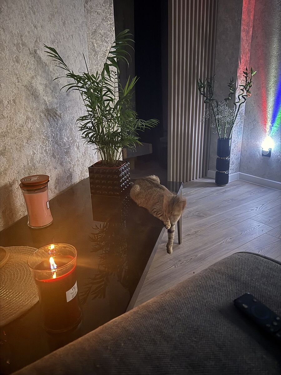 Я свечки жгу только на балконе когда сижу, дома как-то крайне редко. Но у меня есть лампа прикроватная, очень уютно мне, когда не верхний свет. Топчик, когда на улице дождь, постелить свежую постель, и после душа туда залезть, кааайф