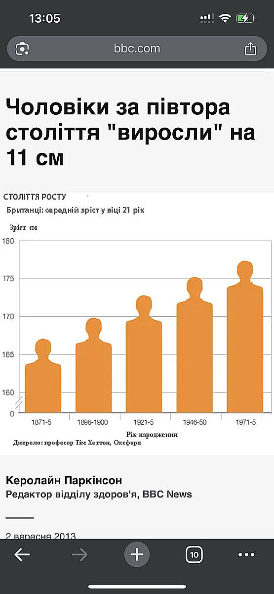 В 1914 году средний рост мужчины во всем мире составлял 162 см, к 2014 году он вырос до 171 см.