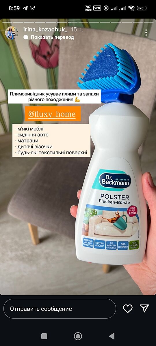 Я вам безумно благодарна! Именно с пылесосом не додумалась бы. Чистые, как после химчистки. Даже липкие пятна ушли