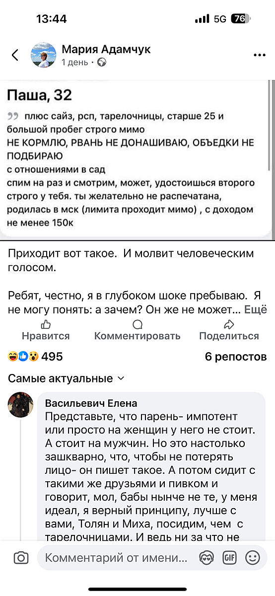 Вам подкинул ФБ шлак, но Вы, вместо игнора, решили это гуано размазать по стенам Советчицы?