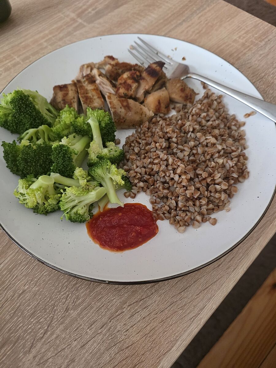 Мясо замариноване стоїть в холодильнику завжди. Кинула на гриль, броколі в воду. Гречка на ніч залита кипятком
