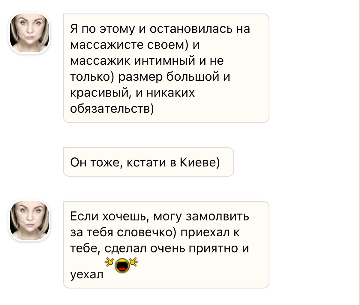 О, мне тоже писал! Тоже подумала мужчина, хотя писал под видом девушки и предлагал свести меня с супер красивым мужчиной для секса)