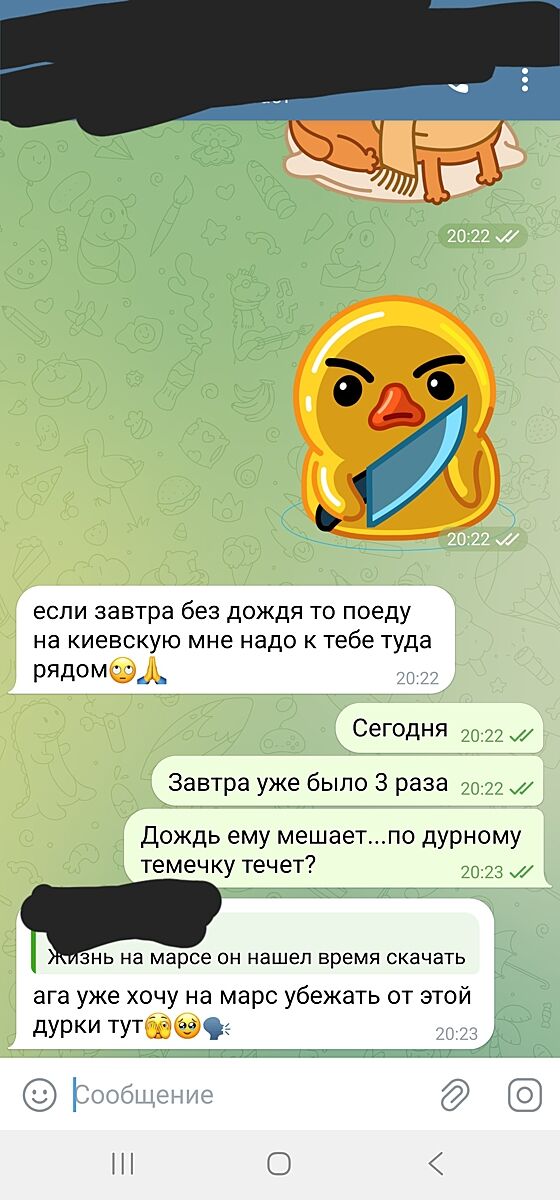 Меня вообще утка с ножом напугала