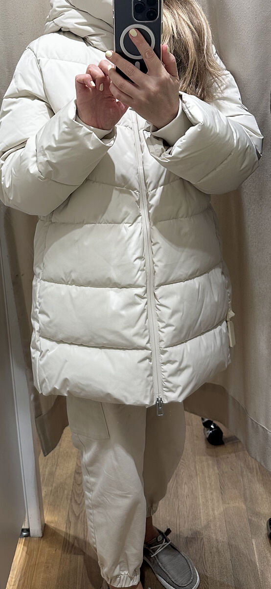 А светлую куртку, сзади от вас, которая повыше, не хотите ли померить? К вашим красивым волосам было бы супер просто. Думаю, что и лицо у вас 👍 - будет очень красиво