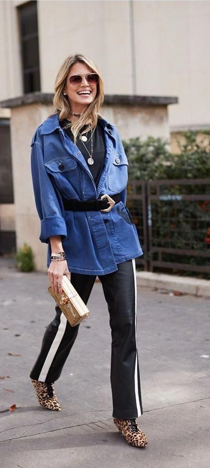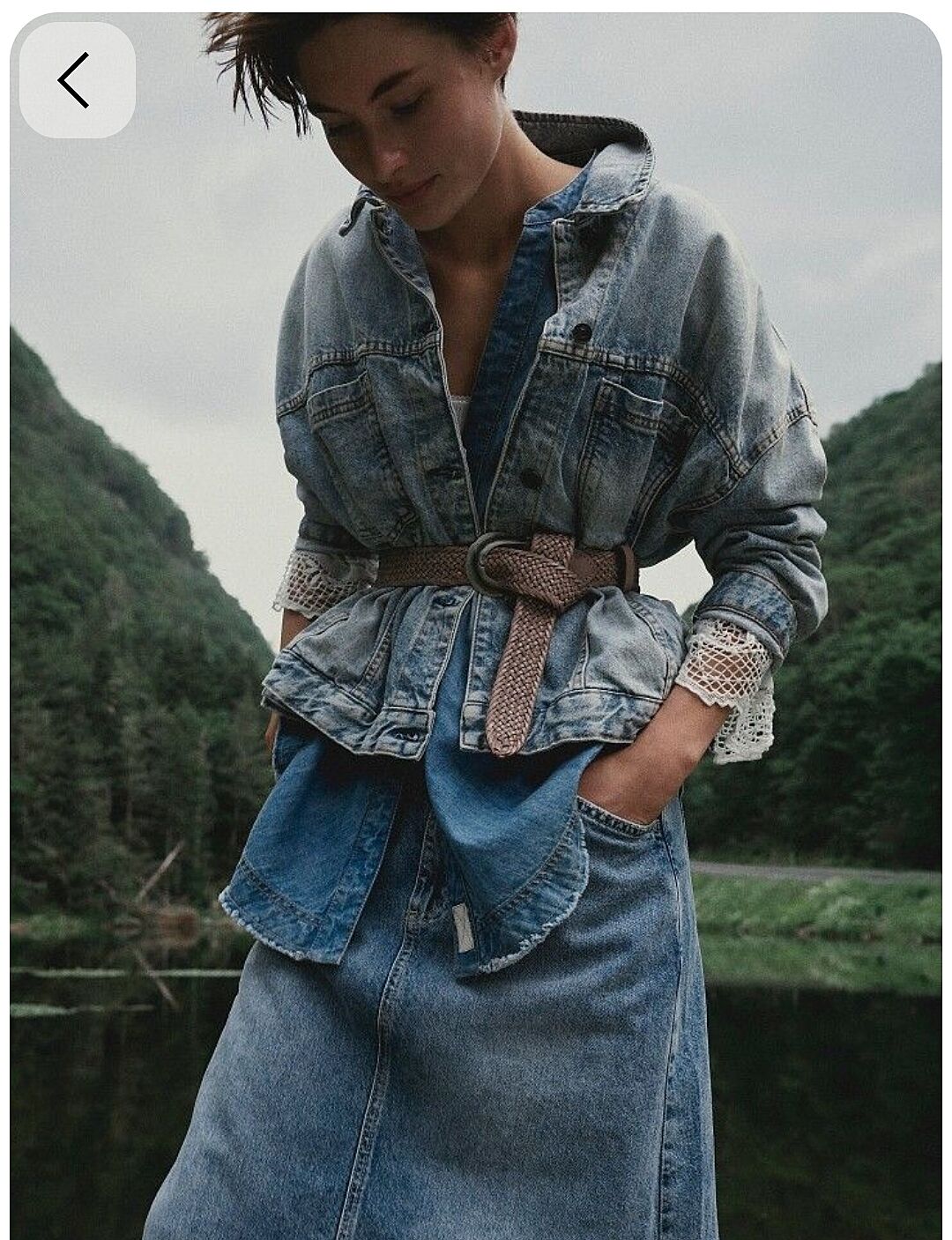 Чтобы получилось, нужна джинсовая куртка большого размера и плотнее. И выразительный пояс. А лучше 2, сейчас так моднее.
