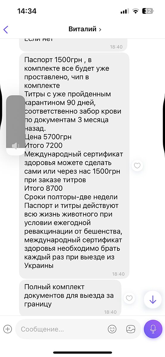 Вакцинация. Комплексная вакцина+бешенство. Трикет месяц назад обе прививки стоили 1200грн. Чип делала давно, был от 150грн, уже, скорее всего, дороже. Чип вводится ДО прививки от бешенства и данные должны быть внесены в базу. Animal.id синхронизируется с международными. Через месяц после вакцинации от бешенства можно сдавать кровь на титры антител. Анализ делается только в Киеве, другие города пересылают в Киев кровь по почте. Цена до 4000грн. Через 3 мес после того, как сдали кровь, животное можно вывозить.
