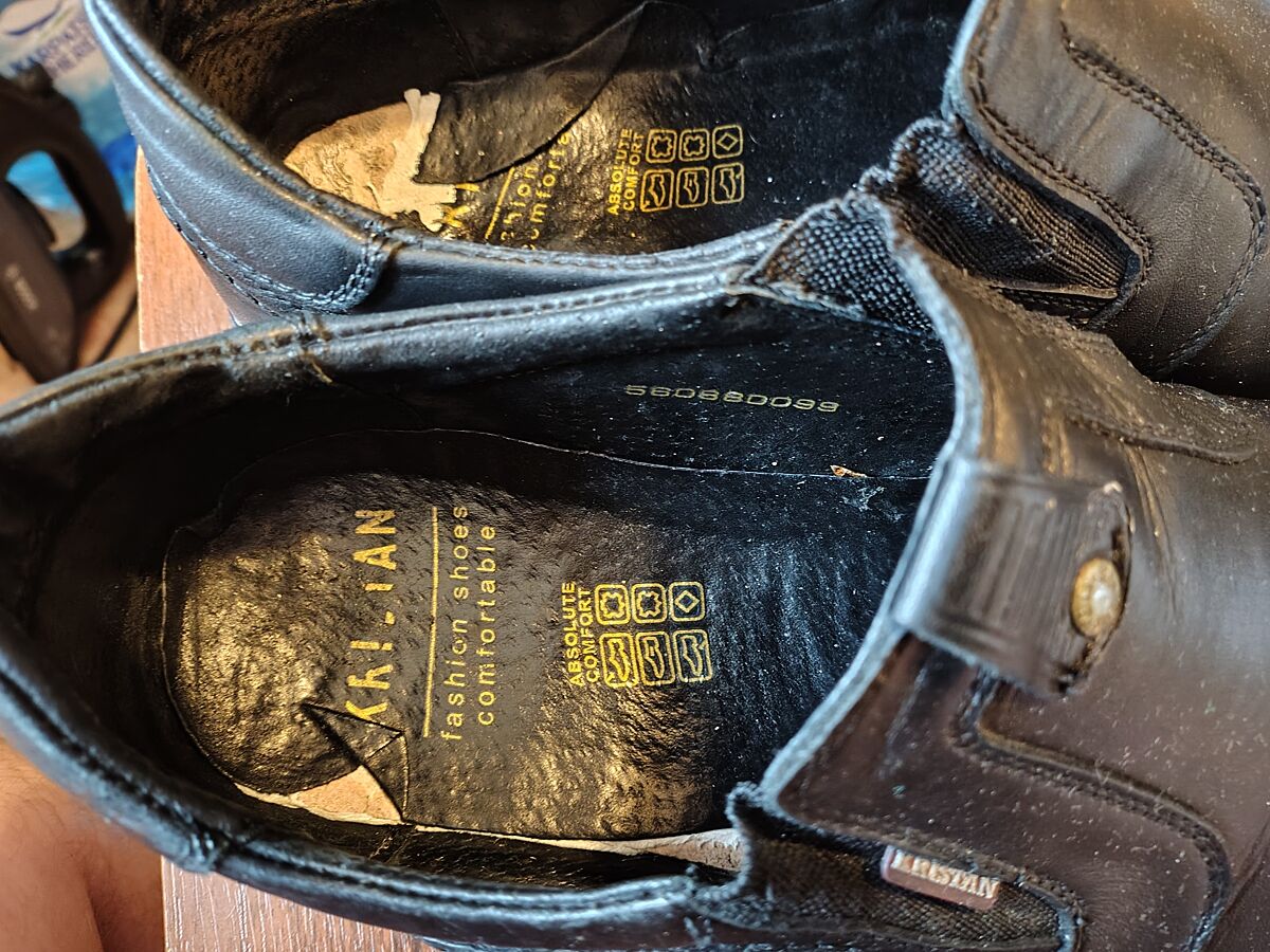 Купили 2 пары мужских туфель Kristan. Одна пара пробегала около года, другая месяца 3. Зачем Вы продаете эту гадость? Ведь это как минимум мошенничество. Прилагаю фото, и явно видно, что это паршивый товар. А не проблема возникшая со временем. Продавцы прекрасно знают, что они продают. Слов нет. Девочки, где совесть???