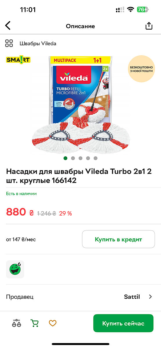І в мене така. Рік користуюсь. Задоволена. А хотіла придбати Vileda бо користувалась нею в апартаментах на відпочинку в Хорватії - теж супер