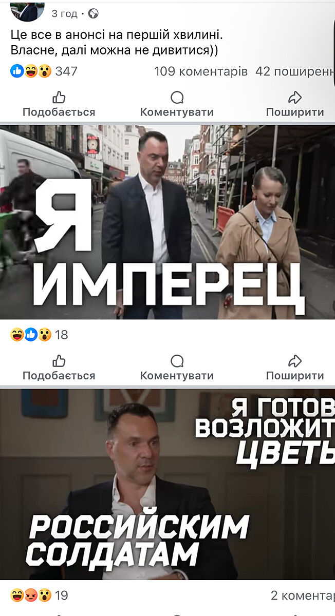 Прочитала лише пару коментарів в Тредс, Арестовича ні разу не бачила і не чула за весь час і не маю наміру дивитись. Кончений п.добол і політичний імпотент.