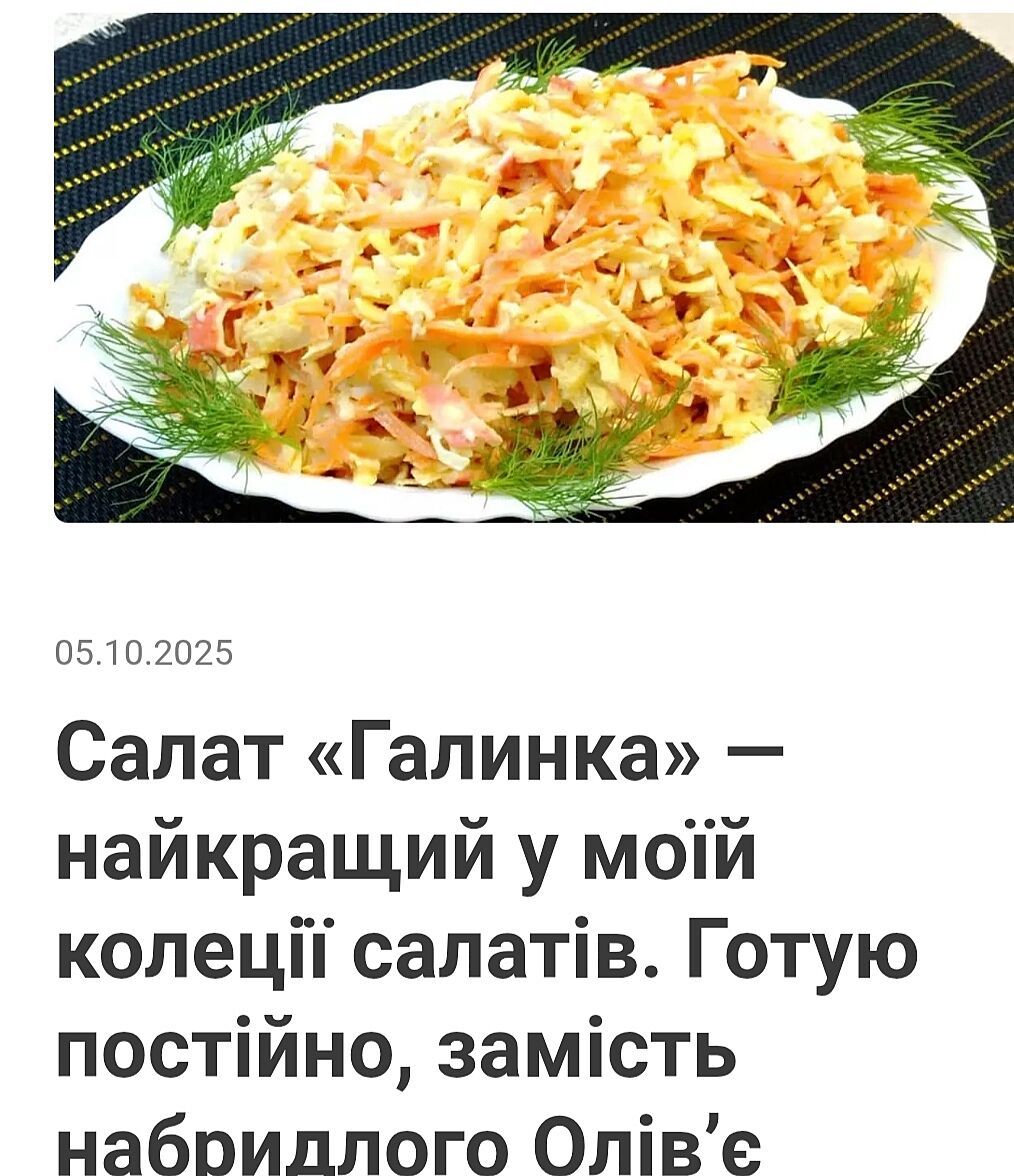 Этот салат я придумала. Он называется салат «полет фантазии», а не какая не Галинка