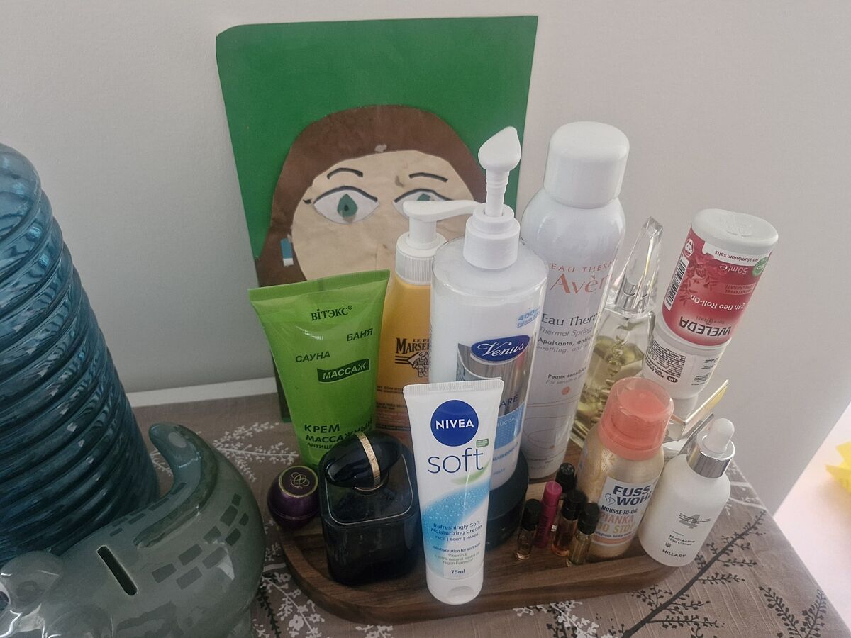 Умывалка и натуральная розовая вода. Сыворотка лифтинг еще где-то валяется, аж один раз нанесла.