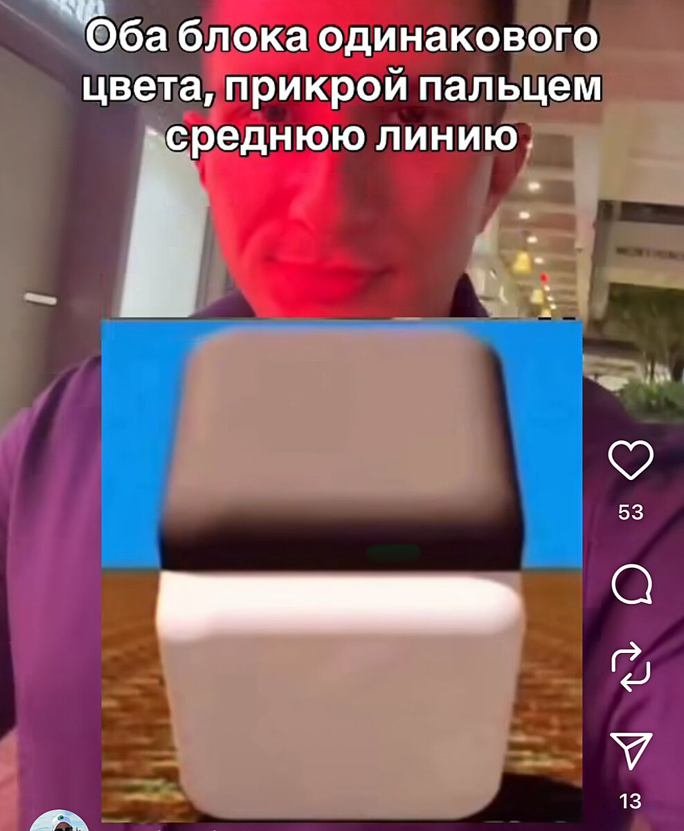 Потому что вы пальцем не линию закрываете, а как раз те части осветленные и затемненные, что придают объекту объем - свет и тени. А стенка этих клавиш или туалетных бачков или кубиков одинаковая)