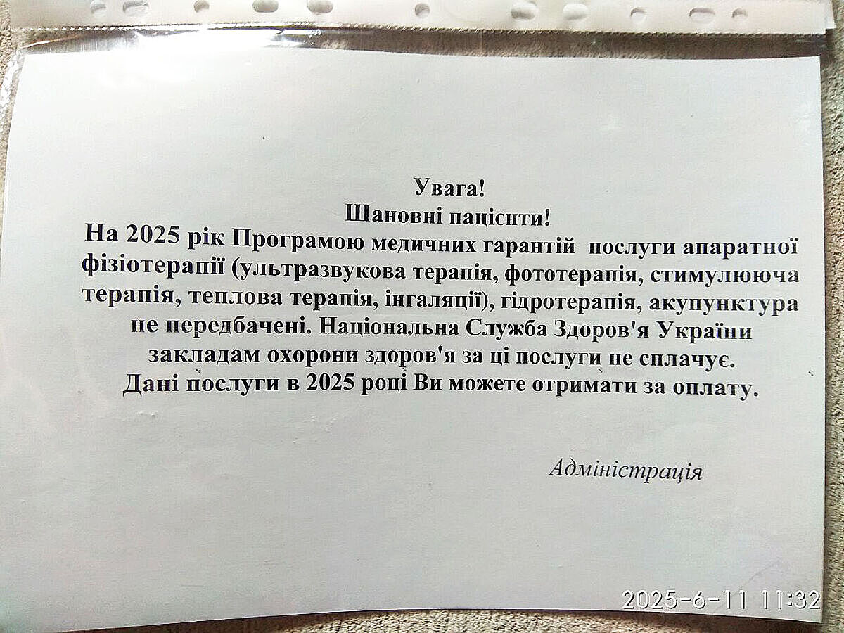 Сейчас еще и все физиопроцедуры стали ПЛАТНЫМИ, независимо от того - есть направление или нет. 2 года подряд (последний раз была в октябре 2024 г.) ходила на курсы (по 10 штук) процедур на суставы: электрофорез и озокерит. Есть показания: коксартроз и начали болеть и увеличиваться суставы на руках. Было бесплатно.